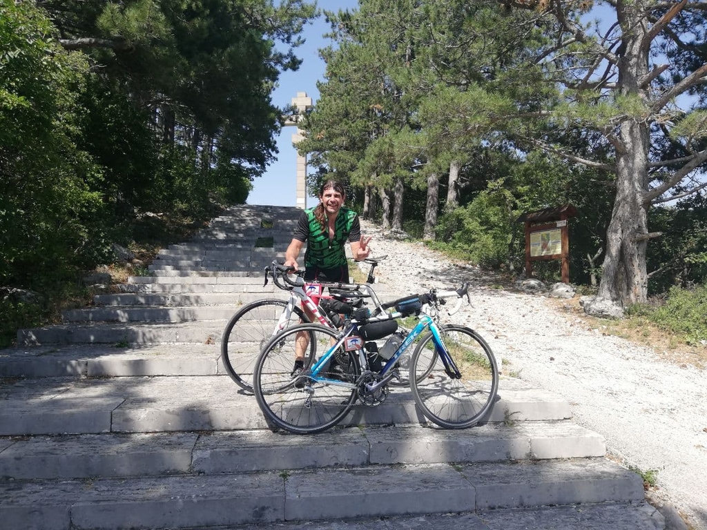 8. Контрола №7 връх Околчица (206 км) - снимка пред стълби към паметника